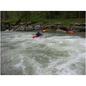Bob Maxey finishing Bridge Rapid (Photo by Scott Gravatt - 4/27/04)