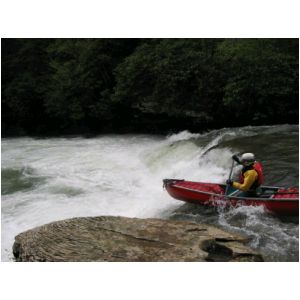 Bob Maxey running Sugar Creek ledge (Photo by Scott Gravatt - 4/27/04)